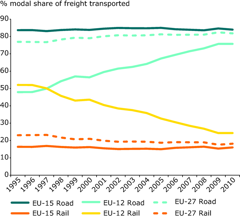 "Trains move 32% of goods in the United States, but generate only 6% of freight-related greenhouse gas emissions. Meanwhile trucks account for 40% of American freight transport and 60% of freight-related emissions."