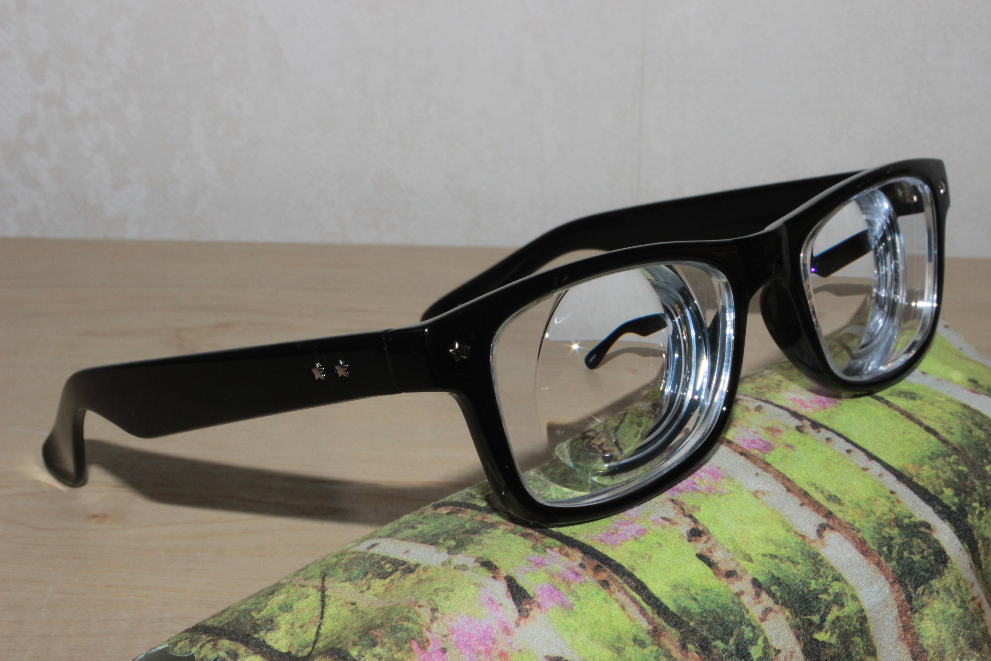 People who are very nearsighted have those weird sort of lens when viewed from the front it looks like they have a lens within a lens. The edges are very thick and it tapers down at the center.